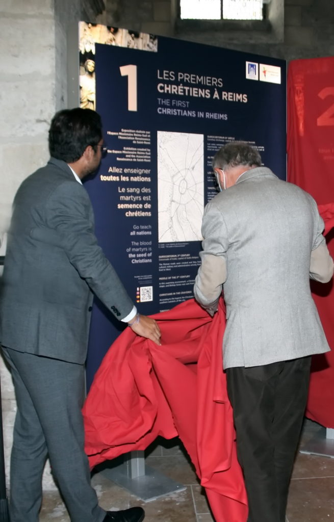 C’est au cours d’une cérémonie présidée par M. Arnaud ROBINET, maire de Reims, et du Père Thierry BETTLER, Vicaire général du diocèse, qu’ont été dévoilés ces panneaux en phase avec les nouvelles technologies, éclairés et bilingues en anglais et en français mais offrant également la possibilité de traduction en allemand et en espagnol.